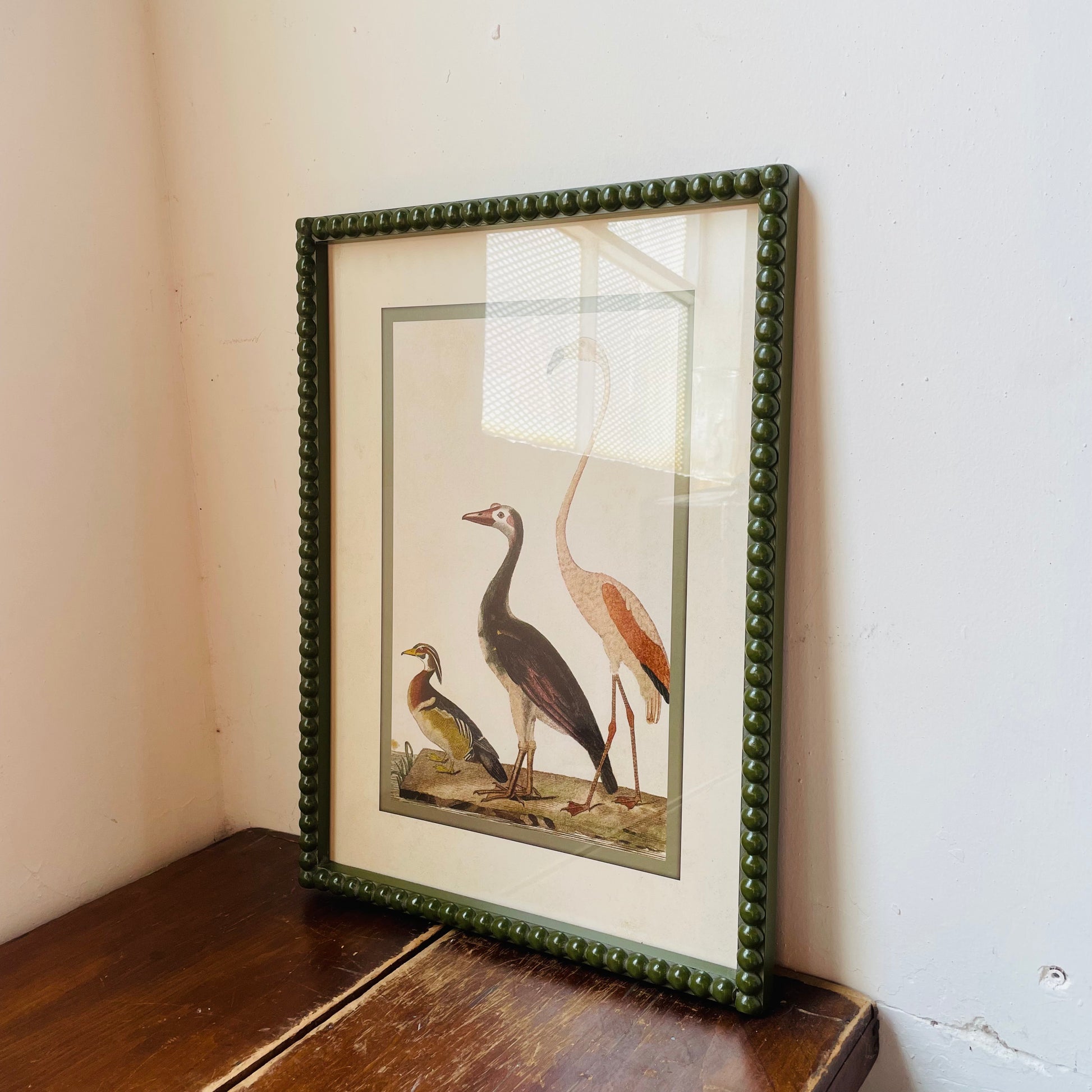 Waterbirds Reproduction Print in Green Bobbin Frame