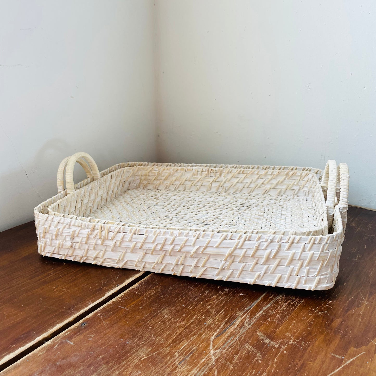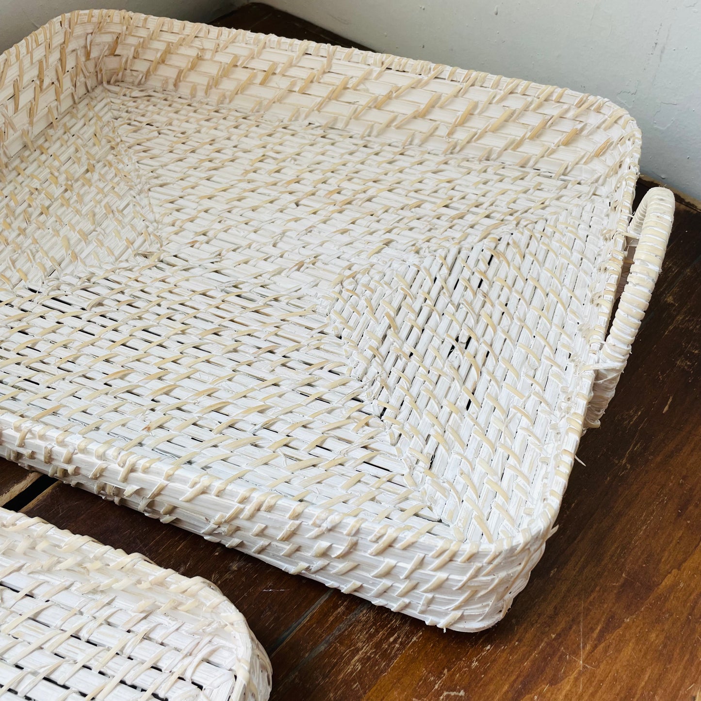 White Hand-Woven Bamboo Tray Set