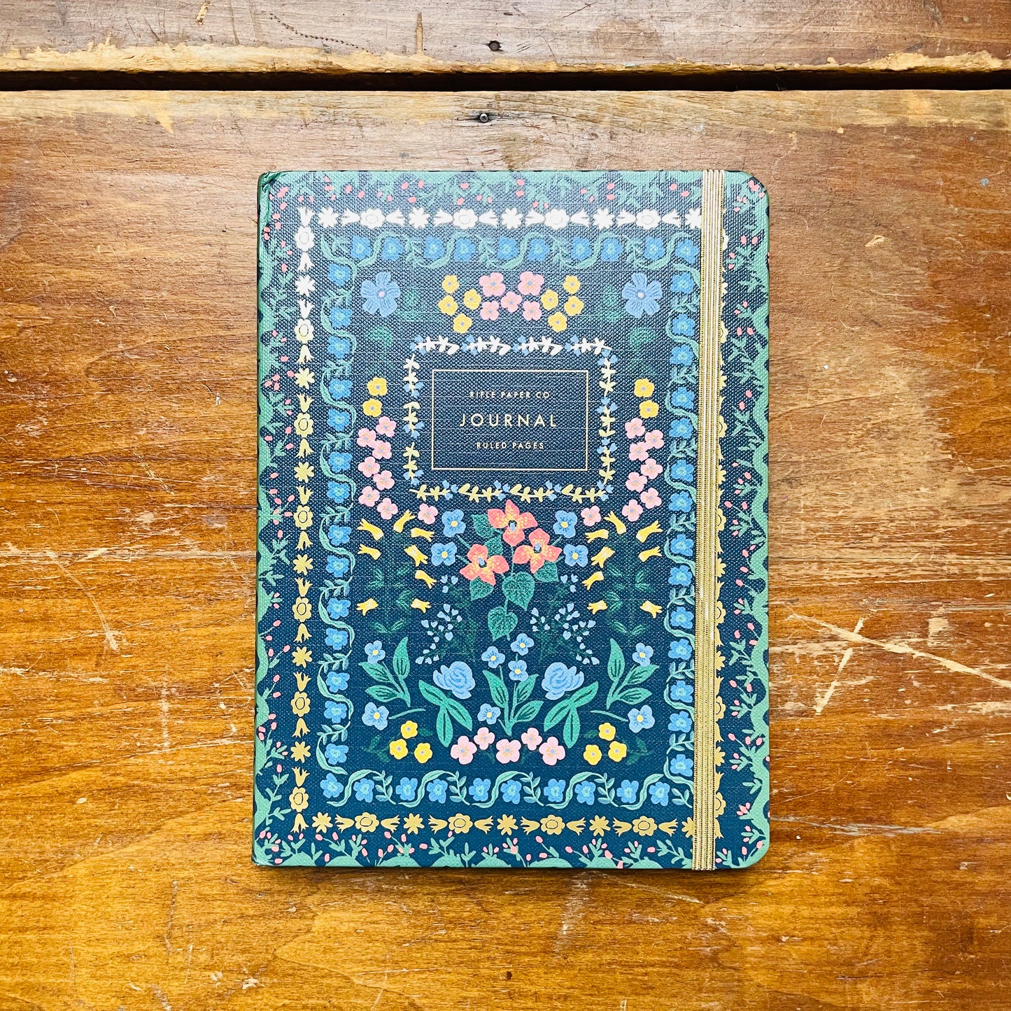 Designed for note takers and journalers, this hardcover journal comes with a gold pen with black ink, and features 144 ruled pages, an elastic band, and a pocket for extra storage.