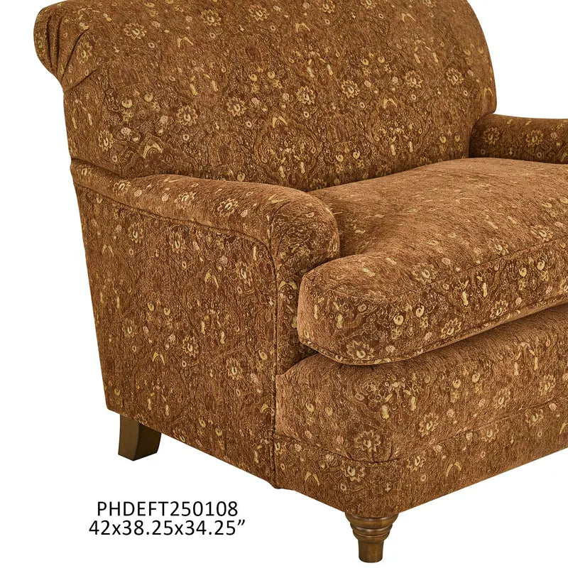 Sink into timeless elegance with this oversized Winchester Jacquard English Chair, featuring a rich rust red base adorned with an intricate jacquard pattern punctuated by vibrant green accents. Its generous proportions and classic silhouette make it the perfect anchor piece for traditional or transitional interiors. The detailed weave adds depth and visual interest to any room, while the warm color palette complements both neutral and jewel-toned décor. Ready to complete your seating arrangement? Ask us about the matching sofa to create a coordinated, curated look throughout your space.