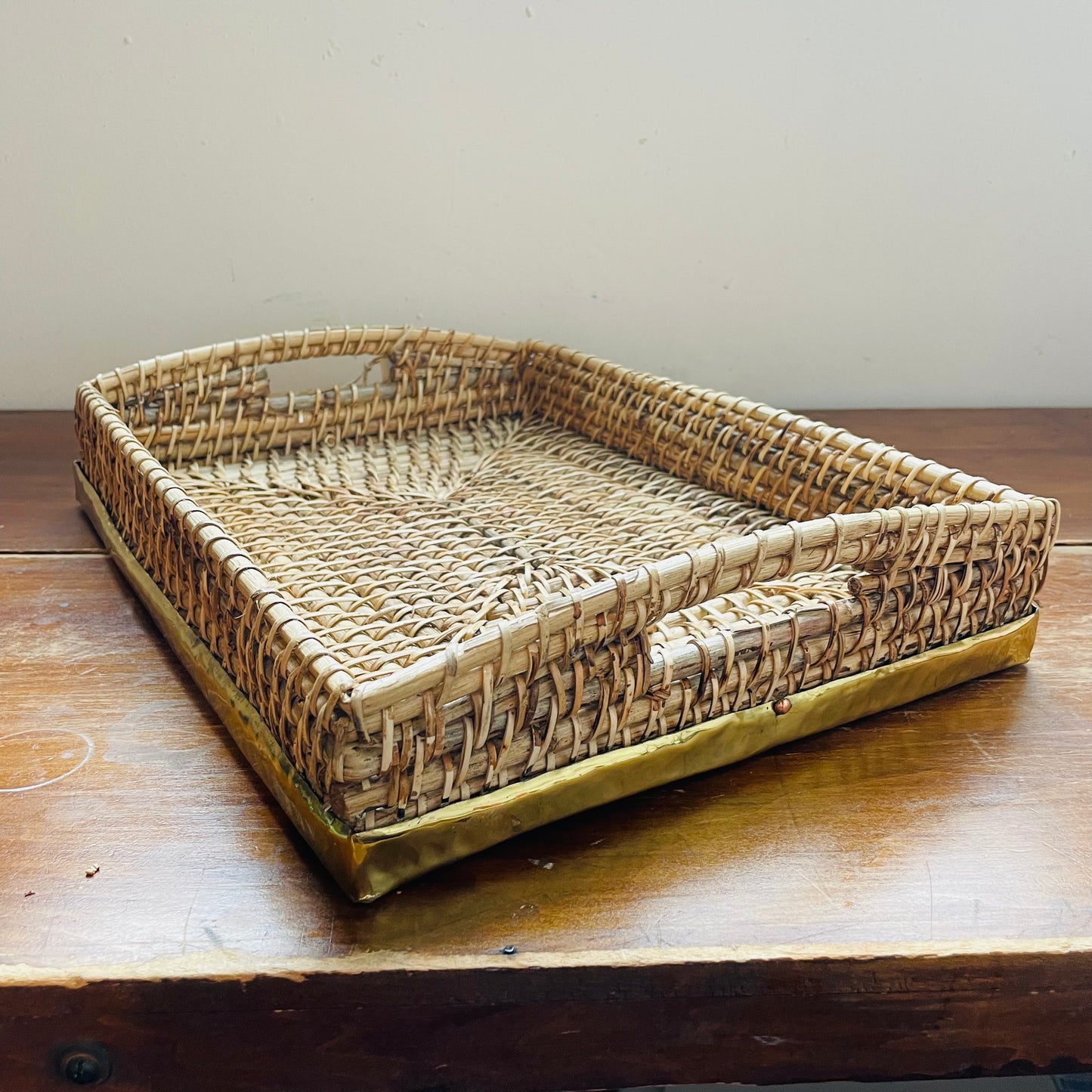 Woven Bamboo and Brass Rectangle Tray